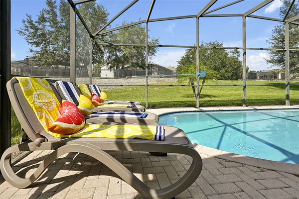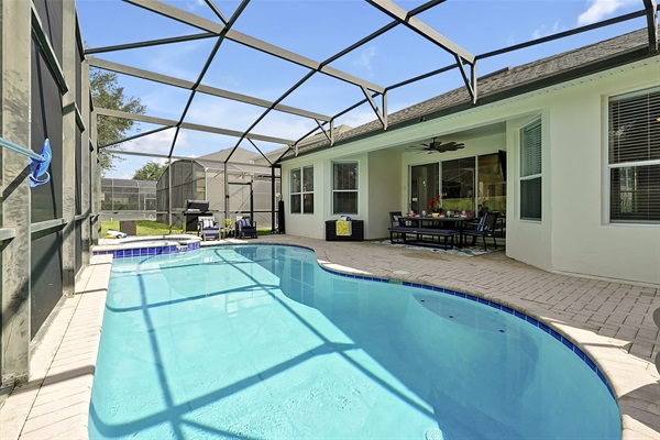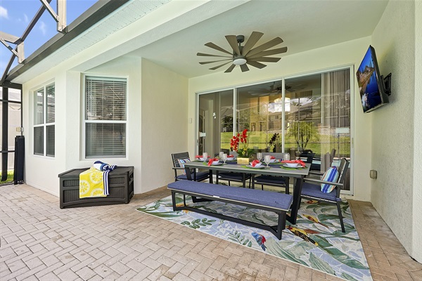 Poolside dining & TV lounge — your perfect Florida retreat.