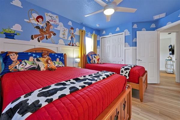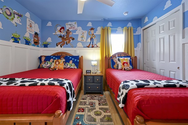 Toy Story magic! Fun twin room where kids dream with Woody & Buzz.
