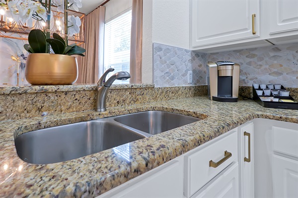 A chef’s dream — quality knife sets, granite counters, and every tool for your perfect vacation meal.